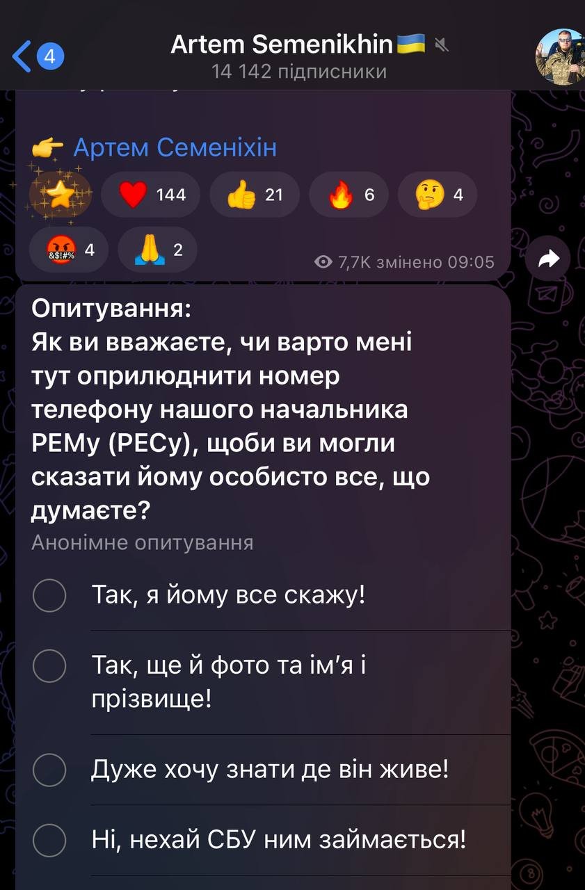 Цей йолоп не перестає дивувати такими «опитуваннями», як мінімум вони виглядають провокаційними, непрофесійними та незаконними(розголошення особистих даних).