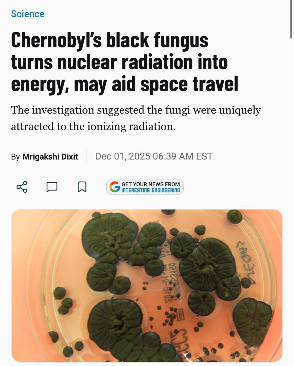 На МКС він зростав на 20% швидше, ніж на Землі. Науковці вже вивчають його потенціал для створення радіаційних щитів і самовідновних «мікобудівель» для майбутніх космічних баз. ㅤ ➡️Надіслати нам новину: @levii_bereg_kyivbot 👉Підписатись: @kiev_levyy_bereg