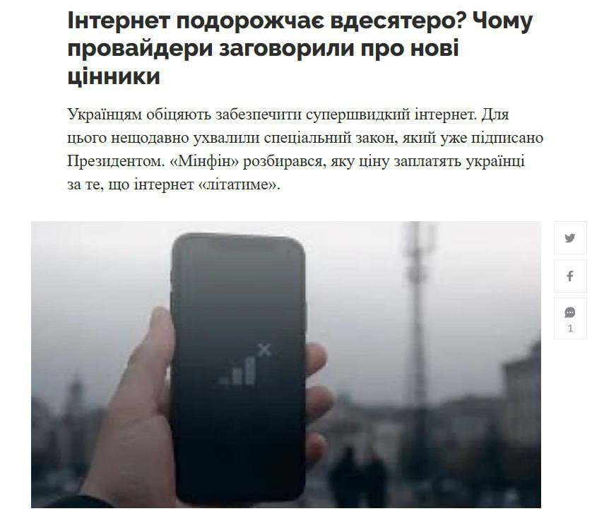 😱Ціни на інтернет можуть зрости у 10 разів — до 3 тисяч гривень на місяць,— повідомляють ЗМІ Причина — новий закон про швидкий і стабільний інтернет.