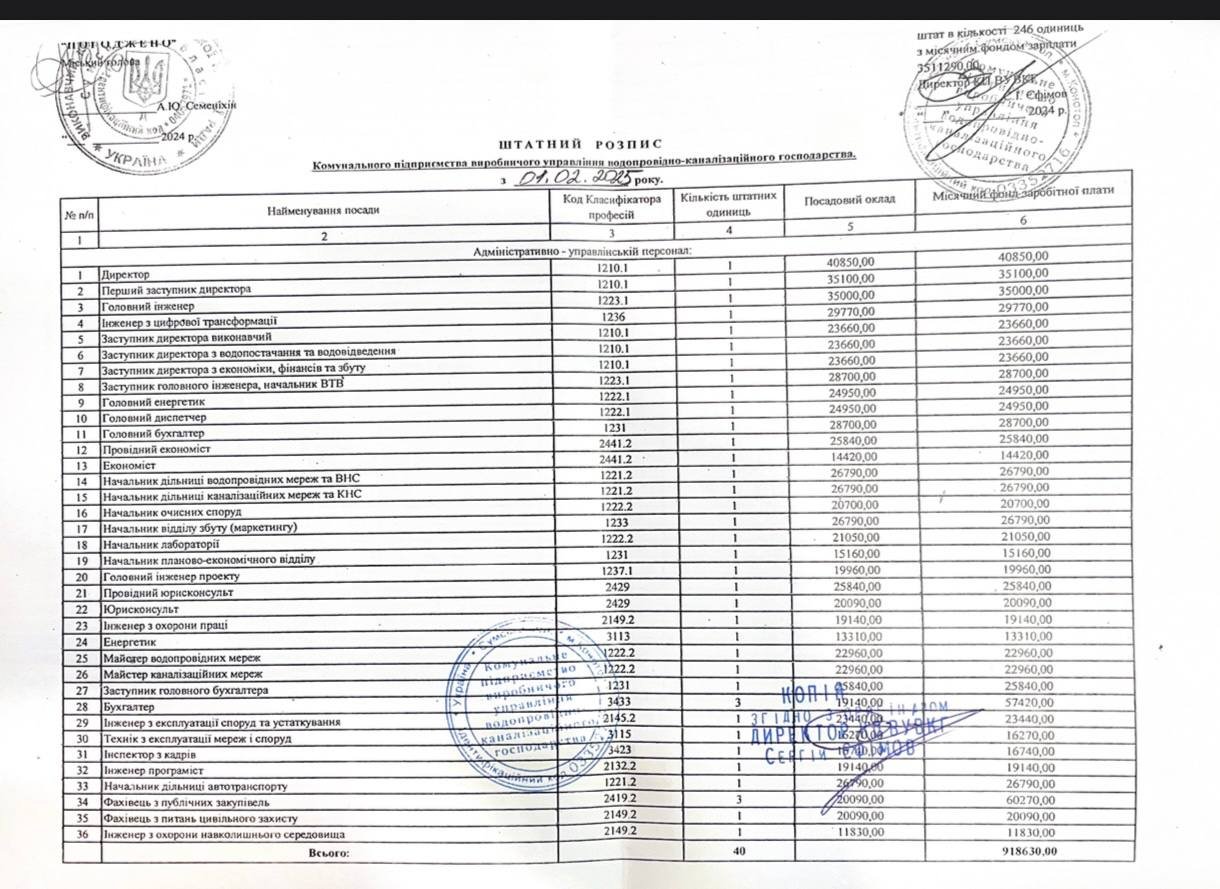 Стає дедалі очевидніше, чому місцева влада разом із керівництвом КП «ВУВКГ» уникають прозорості та досі не надали чіткої калькуляції тарифу на водопостачання та водовідведення. Маємо документи, які відкривають деякі важливі деталі. 📌 Штатний розпис і заробітні плати керівництва У директора підприємства — аж п’ять заступників. Посадові оклади кожного — від 23 660 грн до 35 100 грн. І це лише гола ставка, без премій та надбавок. Коли ми попросили надати інформацію щодо премій, у КП заявили, що їм «потрібно створити нову аналітичну таблицю і залучити цілого спеціаліста». Виникає логічне питання: 🔸 А для чого тоді в штаті інженер з цифрової інформації зі ставкою 29 770 грн? 🔸 І інженер-програміст майже в 20 тис. грн ставки? 📌 А тепер ще цікаве Начальники підрозділів У підприємстві — вісім начальників, зарплати яких також сягають до 30 тис. грн. Є навіть начальник з пожежної охорони, у якого немає жодного підлеглого. Посада є — навантаження немає. 📌 І це ще не все. Є інша, неофіційна сторона процесу. З наших джерел відомо про схему, за якою «зручних» людей — окремих депутатів, лояльних осіб чи тих, хто може занести подарунок — приховують у структурі підприємства. Таким працівникам часто створюють формальні посади та забезпечують бронь від служби, хоча їхня участь у роботі підприємства мінімальна або взагалі відсутня. І це також закладається в тариф, який сплачують мешканці міста. 📌 Головне Усі озвучені суми — лише посадові оклади. Фактичні зарплати з преміями й надбавками — значно більші. А прозорість щодо їх формування — відсутня. Тож поки людям розповідають про «високу вартість електроенергії» та «об’єктивні причини підвищення тарифів», у КП «ВУВКГ» діє роздутий управлінський апарат, сумнівні кадрові практики та приховування інформації, яка має бути відкритою для громади. Ми й надалі вимагатимемо: ✔ прозору калькуляцію тарифу, ✔ повну інформацію про зарплати та премії, ✔ припинення практик, які перекладають зайві витрати на плечі мешканців