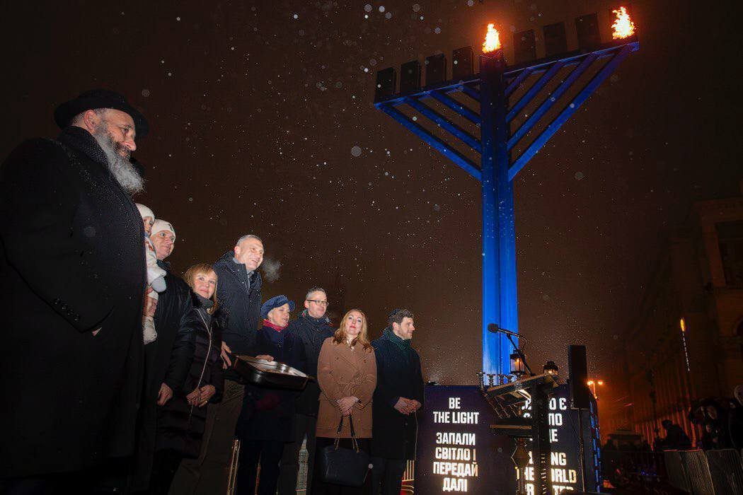 🕎У Києві запалили ханукальні свічки на Менорі за участі раввинів та дипломатів.