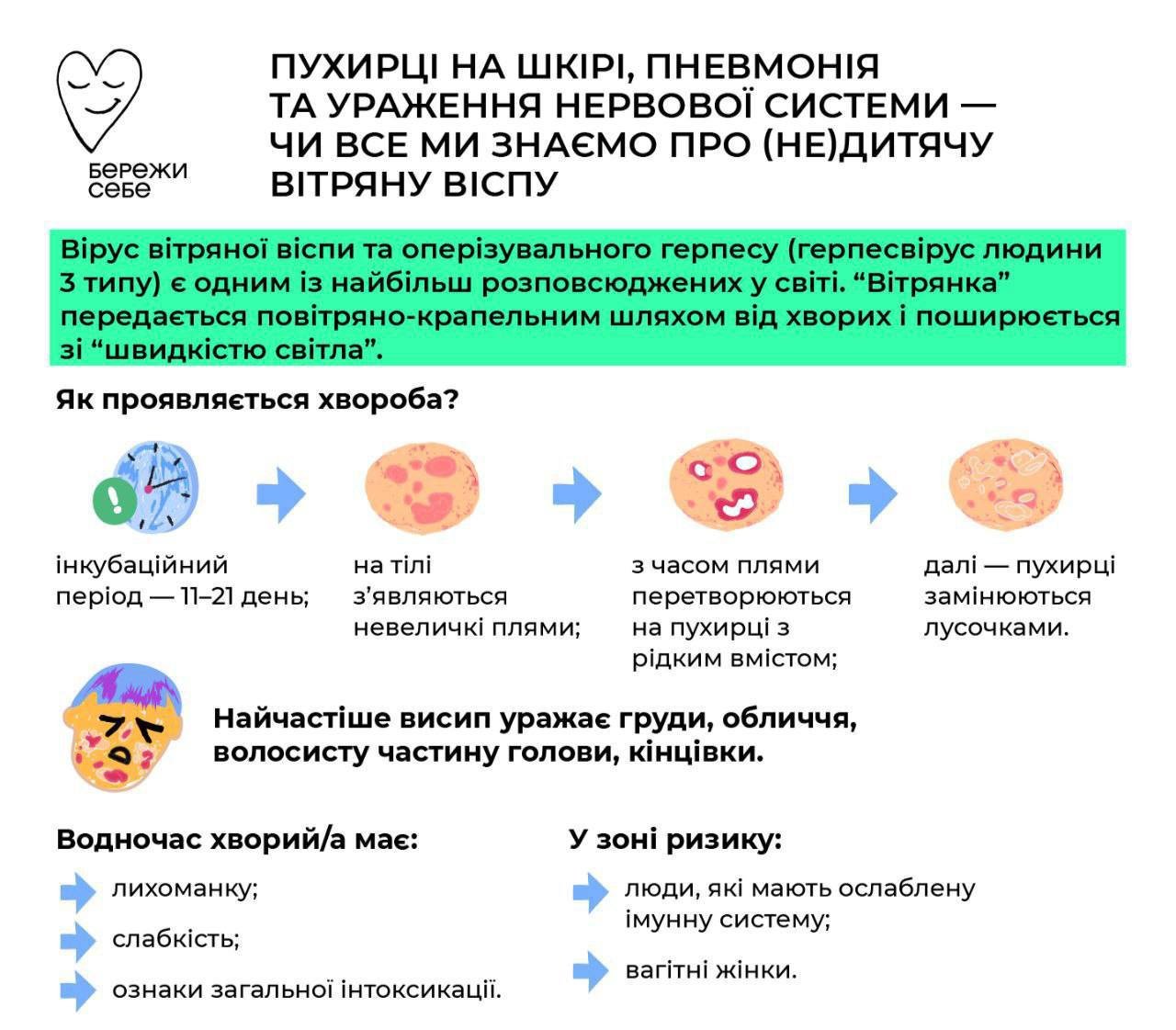 Людина може бути заразною ще до появи висипу і до п’яти днів після того, як зникнуть останні пухирці. Симптоми включають підвищену температуру, слабкість, головний біль та сверблячий висип по всьому тілу. ㅤ ➡️Надіслати нам новину: @levii_bereg_kyivbot 👉Підписатись: @kiev_levyy_bereg