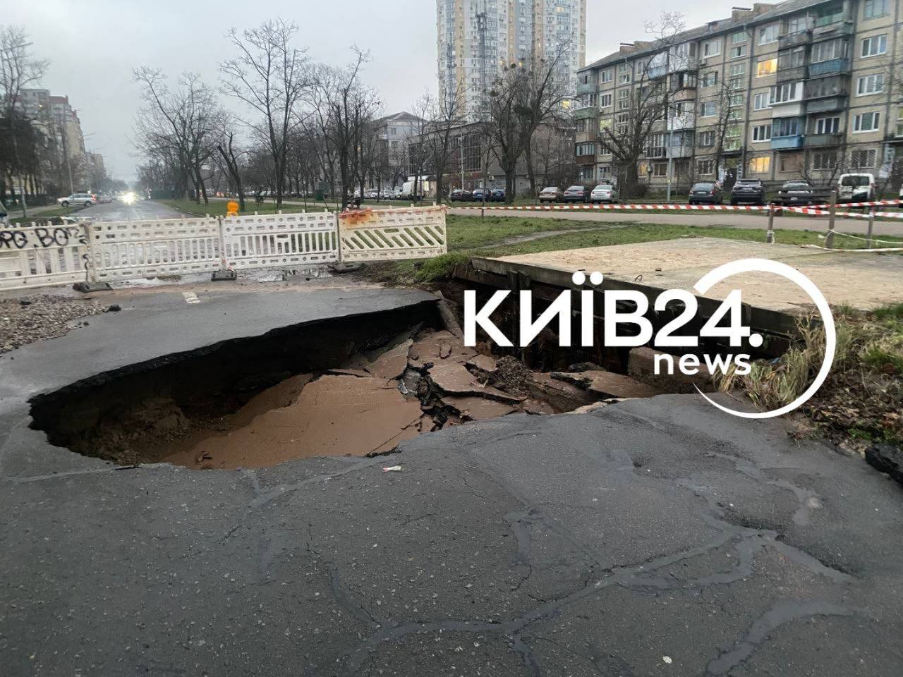 👀На бульварі Верховної Ради у Дніпровському районі Києва утворилося велике провалля на місці вчорашнього прориву водопровідної мережі На локації працюють аварійні служби.