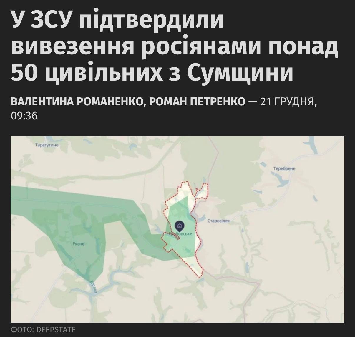 ⚡️ У ЗСУ підтвердили, що війська РФ перетнули державний кордон України поблизу села Грабовське в Сумській області та вивезли звідти понад 50 цивільних, — головне управління комунікацій для УП.