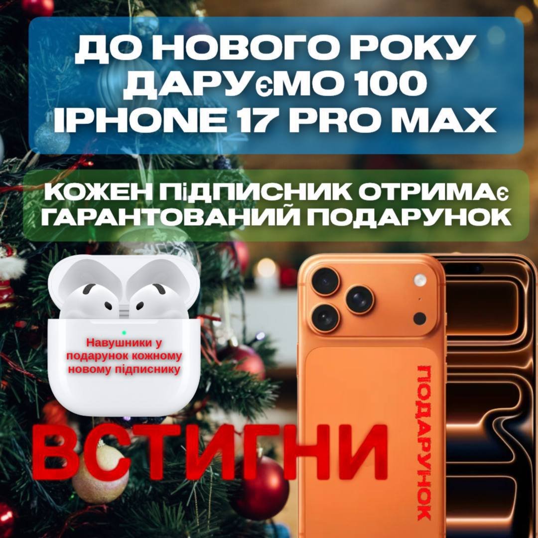 До Нового року роздаємо 100 iPhone 17 Pro Max 🎁 Кожен підписник отримує гарантований подарунок.