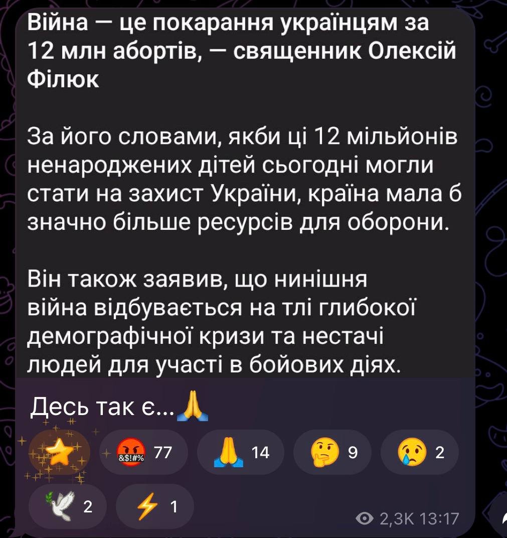 Цього разу пацієнт додумався перекласти провину за війну на самих українців. Фактично, мер займається віктімблеймінгом: замість засудження агресора, він тиражує маразм про те, що ми «самі винні» і це нам така «кара». Та найбільше вражає його ставлення до людей. Для нього діти — це тупо «біологічний матеріал», якого зараз, бачте, не вистачає для фронту. Це чиста радянщина і логіка м'ясника: баби народять, аби державі було кого відправити в окопи. І це при тому, що історія давно довела: заборона абортів, якою б складною та неприємною не була ця тема, ніколи не збільшує народжуваність. Вона лише множить жіночі смерті від підпільних операцій, калічить долі та наповнює інтернати нещасними дітьми. Але вершина цинізму — чути моралізаторство саме від цього персонажа. Про сімейні цінності нам розповідає Артем Юрійович, який жінок змінює частіше, ніж сорочку? Це нам закидає "зразковий батько", який наштампував дітей у різних шлюбах і якого буквально через суд змушують платити аліменти, бо сам він своїх дітей не підтримує? Чи, може, це той великий виховник, чиї неповнолітні нащадки колекціонують десятки протоколів за порушення ПДР? Чи це той самий бойовий офіцер, який всіх відправляє на фронт, а свою дупу в тилу за бюджетні гроші наймає охороняти людей? Ось воно, справжнє обличчя нашого керманича: суцільне лицемірство, подвійні стандарти і зневага до власного народу. Продовжуй у тому ж дусі, Артеме, нехай всі бачать, яка прірва між твоїми словами і твоїми діями. @kvartal35