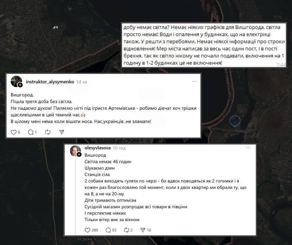 @kiev_levyy_bereg • 29.12.2025 11:12 Київ ⚡️У Вишгороді електропостачання відсутнє вже третю добу Мешканці повідомляють, що через відключення немає не лише світла, а й води та опалення. ㅤ ➡️Надіслати нам новину: @levii_bereg_kyivbot 👉Підписатись: @kiev_levyy_bereg Джерело Поділитися