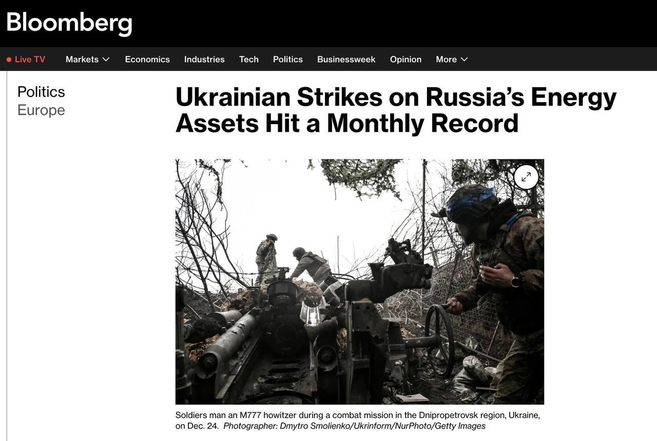 ℹ️ Цього місяця Україна посилила атаки на російську енергетичну інфраструктуру, завдавши найбільшої шкоди активам і найширшому колу цілей з початку війни, — Bloomberg.