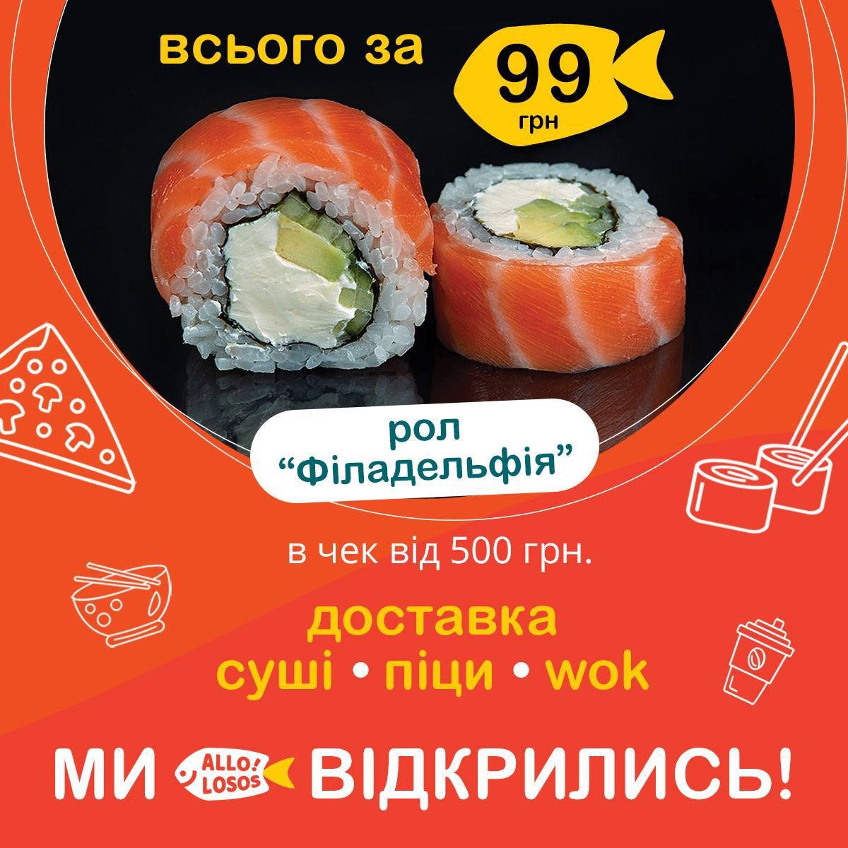 Алло, Лосось — доставка суші, піци та wok вже у вашому районі 🍣🍕 🔥 Акція на відкриття Рол «Філадельфія» з лососем — всього за 99 грн 👉 при замовленні від 500 грн ✔️ Свіжий лосось ✔️ Щедра порція ✔️ Швидка доставка по Позняках ⏰ Кількість акційних ролів обмежена ——— 📲 Замовлення тут: 👉 https://bit.ly/3LwsoKR 📞 Телефон: 👉 0800 330 523 🕒 Графік роботи: 👉 09:30 - 22:00 📍 Адреса: 👉 Анни Ахматової, 16 а