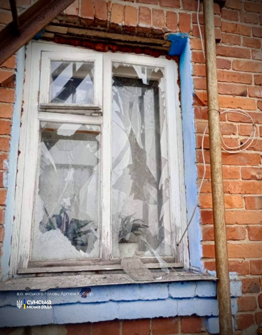Внаслідок удару пошкоджені дах та вікна будинку. Про це написав в. о. міського голови Кобзар. Загалом за добу російські війська здійснили понад 50 обстрілів по 23 населених пунктах у 14 територіальних громадах Сумщини – ОВА. @kvartal35