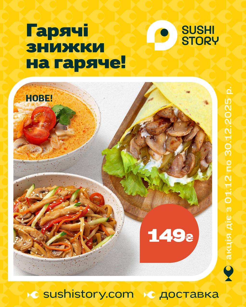 Гарячі знижки на гаряче кожен день в Sushi Story 🔥Смачні страви всього за 1️⃣4️⃣9️⃣ грн 😍