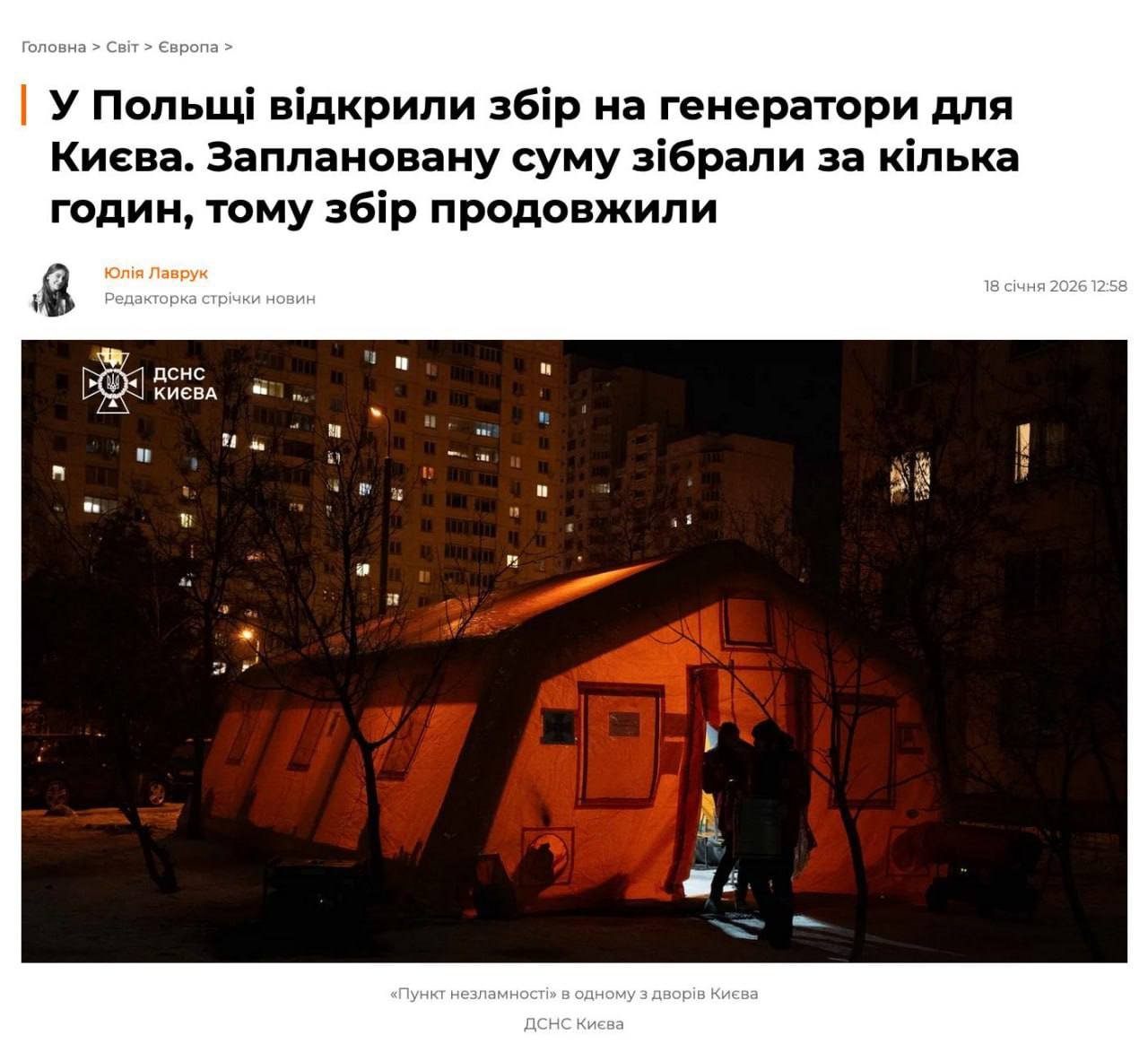 ⚡️У Польщі відкрили збір на генератори для Києва та за кілька годин досягли початкової мети Завдяки підтримці вдалося зібрати понад 1,1 млн злотих, що становить близько 13 млн гривень.